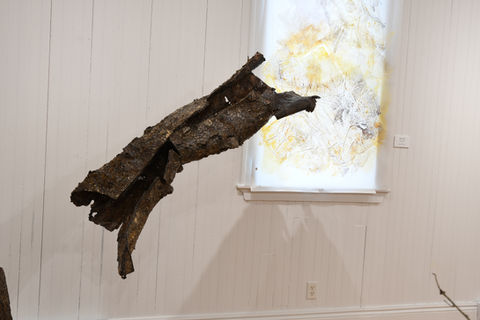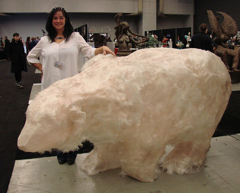 d’Hélène Laplante est imprégnée par le mouvement, l’occupation de l’espace et la création scénographique. Artiste pluridisciplinaire, elle utilise actuellement la fibre de verre pour donner forme à des représentations de l'esprit animal.